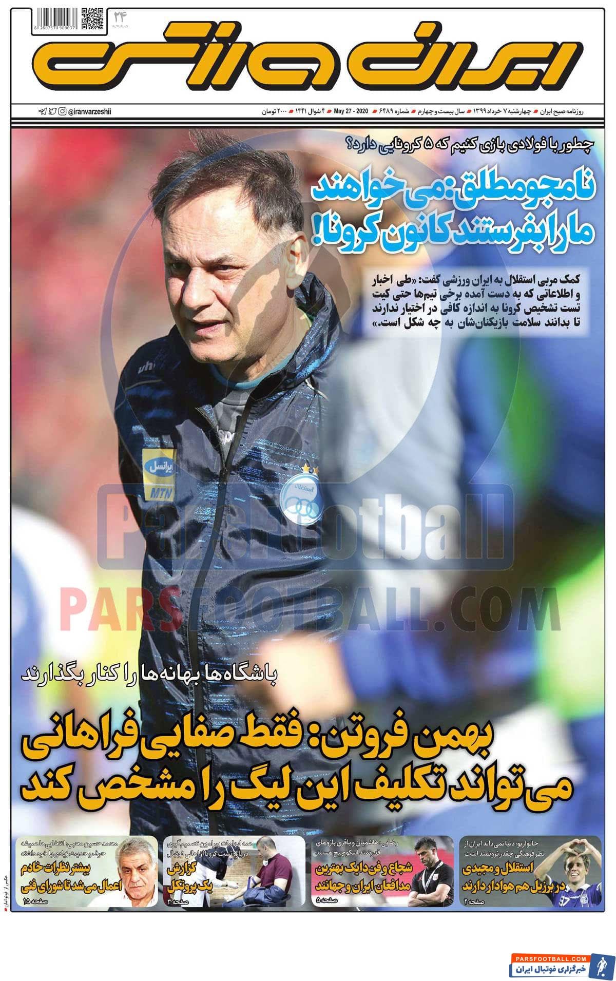 عناوین روزنامه ایران ورزشی چهارشنبه ۷ خرداد ماه به شرح زیر است :