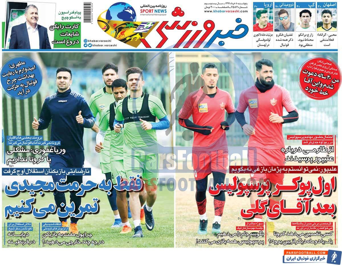 عناوین روزنامه خبر ورزشی پنجشنبه ۸ خرداد ماه به شرح زیر است :