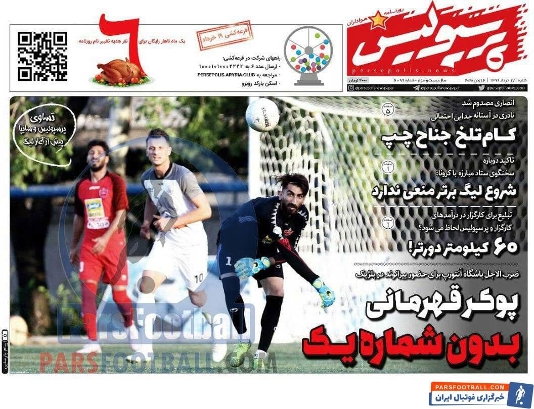 عناوین روزنامه پرسپولیس شنبه ۱۷ خرداد ماه به شرح زیر است :