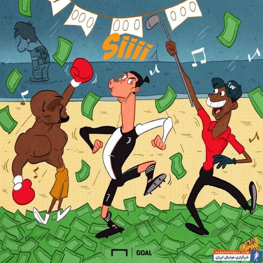 کریستیانو رونالدو هم ورزشکاری با سرمایه یک میلیارد دلار شد و به تایگر وودز و فلوید می‌ودر پیوست. عمر مومنی این دستاور رونالدو را سوژه جدیدترین کاریکاتورش کرده است.