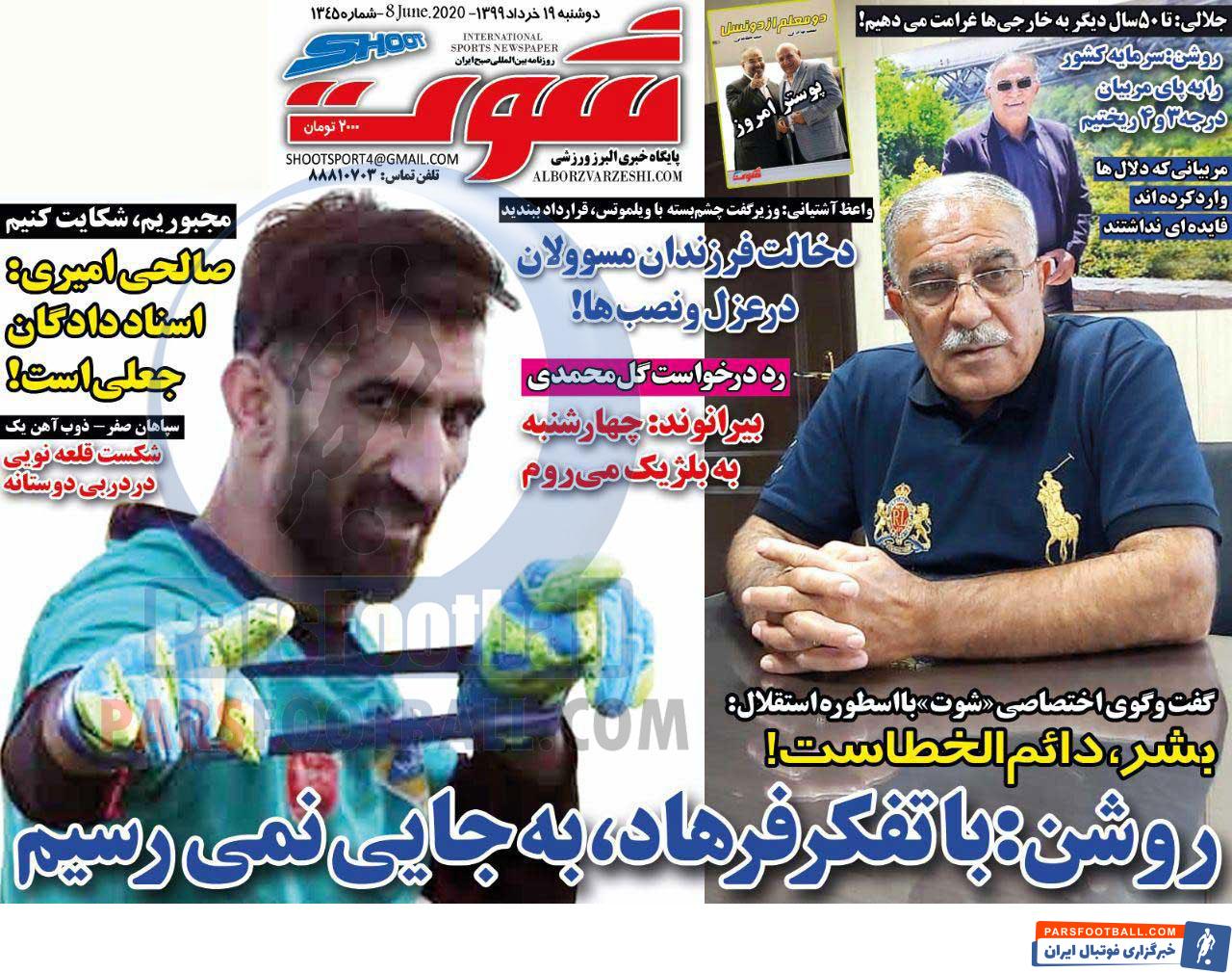 عناوین روزنامه شوت دوشنبه ۱۹ خرداد ماه به شرح زیر است :