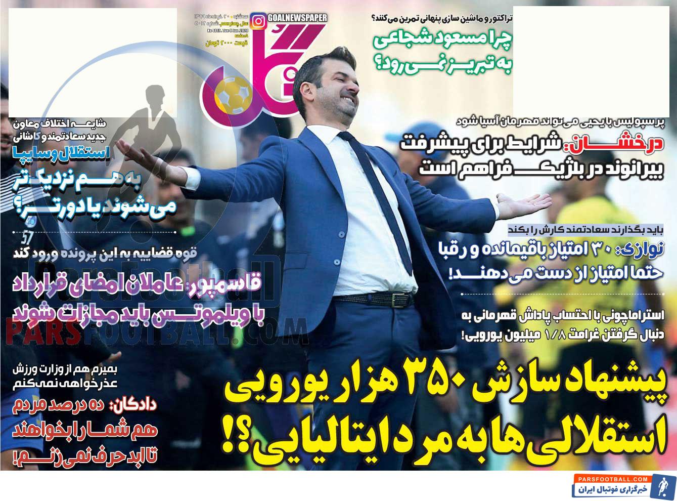 گیشه اخبار داخلی پارس فوتبال همه روزه به بررسی نشریات ورزشی می پردازد. به بررسی روزنامه گل می پردازیم.
