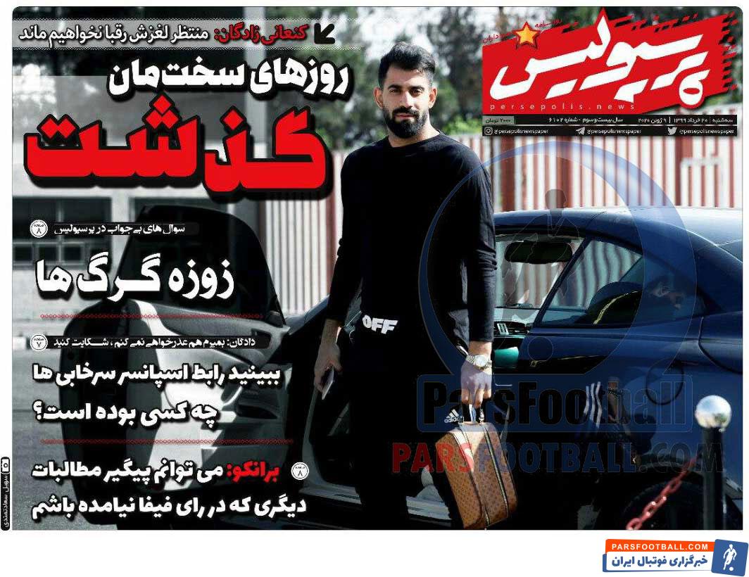 عناوین روزنامه پرسپولیس سه شنبه ۲۰ خرداد ماه به شرح زیر است :