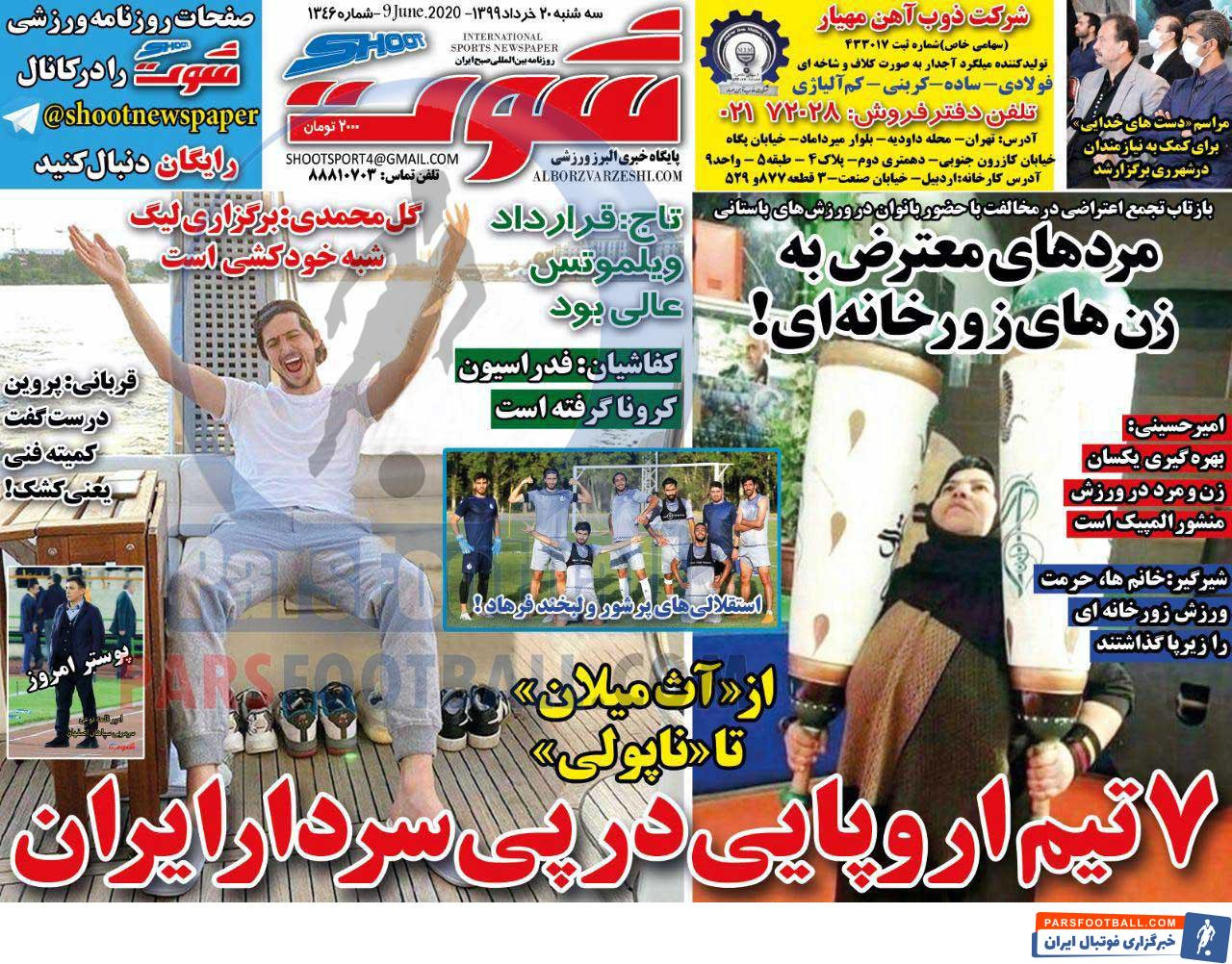 عناوین روزنامه شوت سه شنبه ۲۰ خرداد ماه به شرح زیر است :