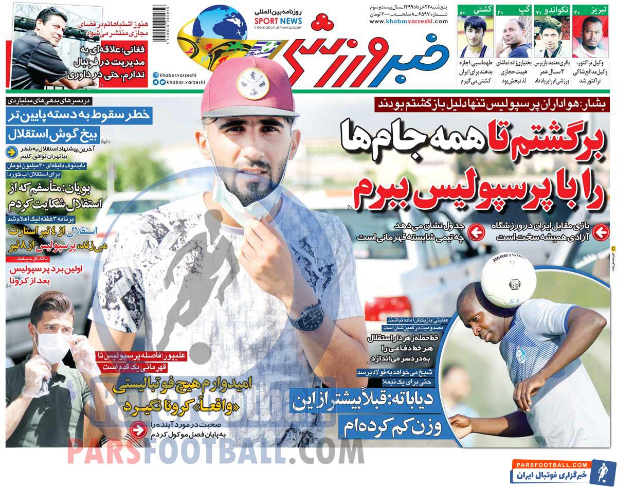 عناوین روزنامه خبر ورزشی پنجشنبه ۲۲ خرداد ماه به شرح زیر است :