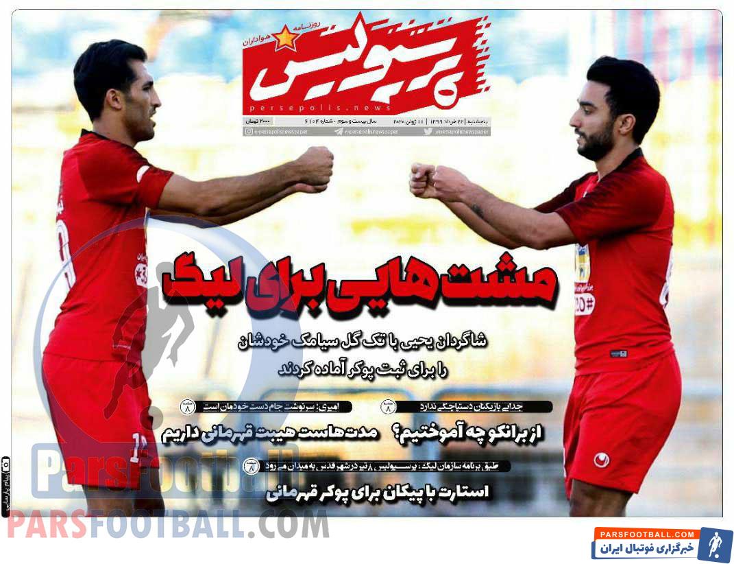 عناوین روزنامه پرسپولیس پنجشنبه ۲۲ خرداد ماه به شرح زیر است :