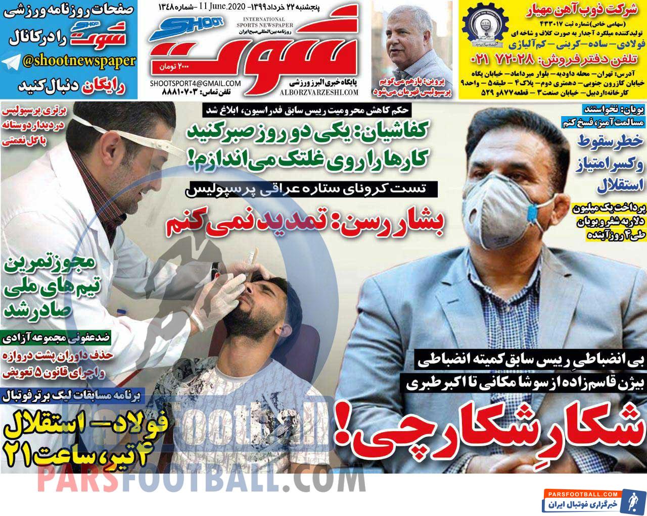 عناوین روزنامه شوت پنجشنبه ۲۲ خرداد ماه به شرح زیر است :