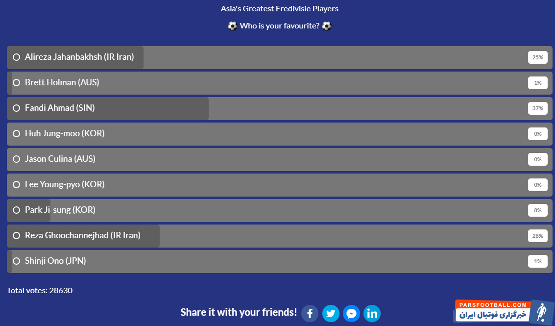 ستارههای ایرانی در نظرسنجی سایت AFC به دومین و سومین بازیکن برتر تاریخ آسیا در لیگ هلند لقب گرفتند.