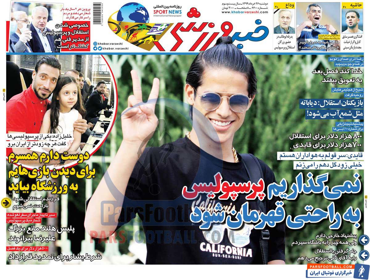 عناوین روزنامه خبر ورزشی دوشنبه ۲۶ خرداد ماه به شرح زیر است :