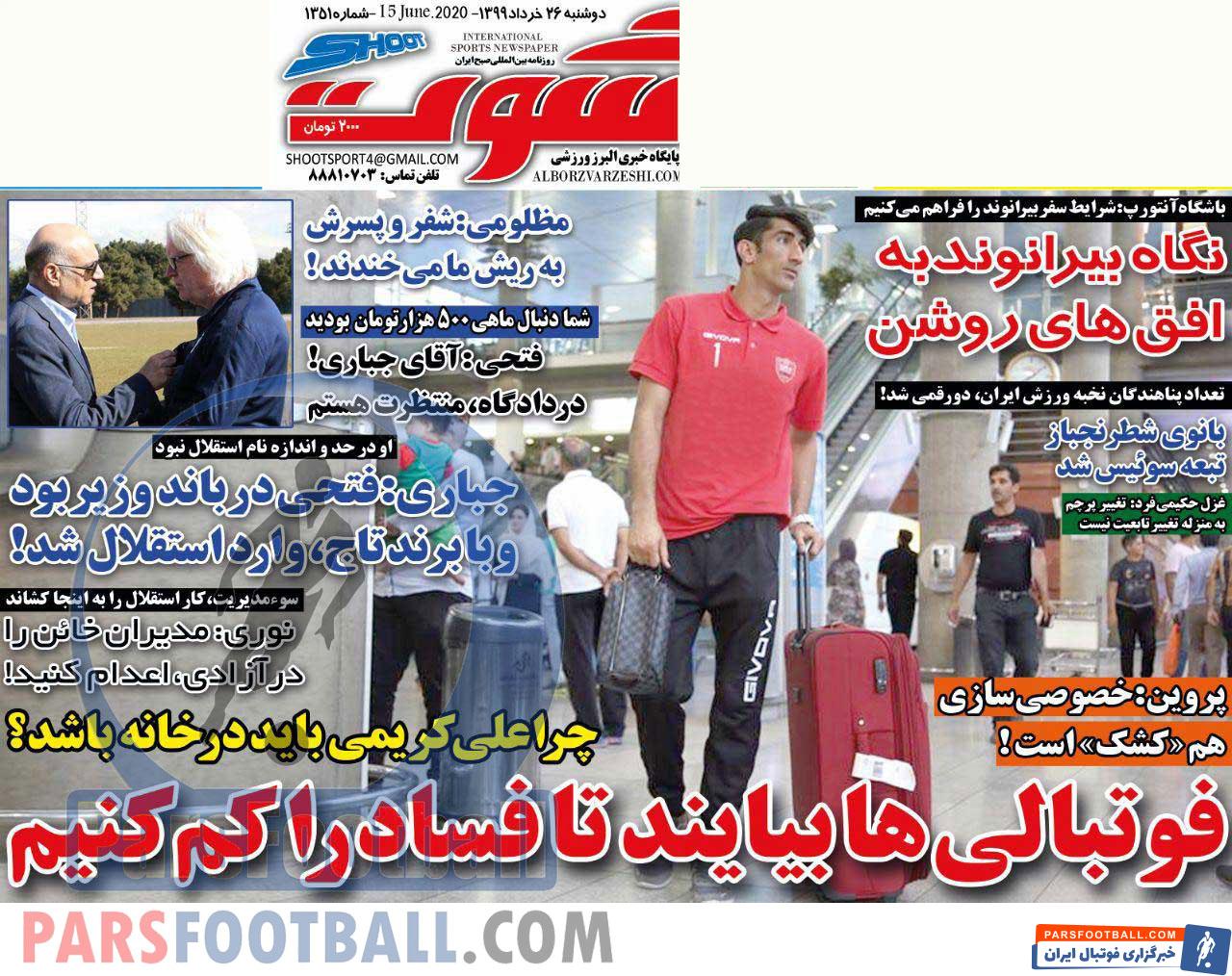 عناوین روزنامه شوت دوشنبه ۲۶ خرداد ماه به شرح زیر است :