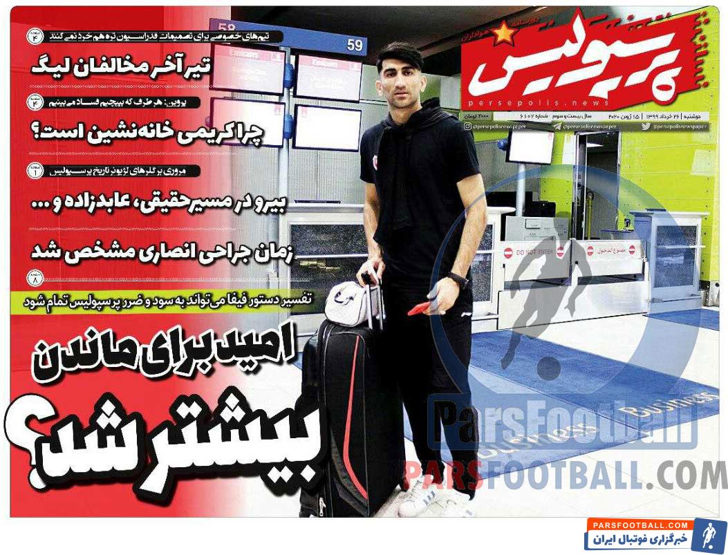 عناوین روزنامه پرسپولیس دوشنبه ۲۶ خرداد ماه به شرح زیر است :