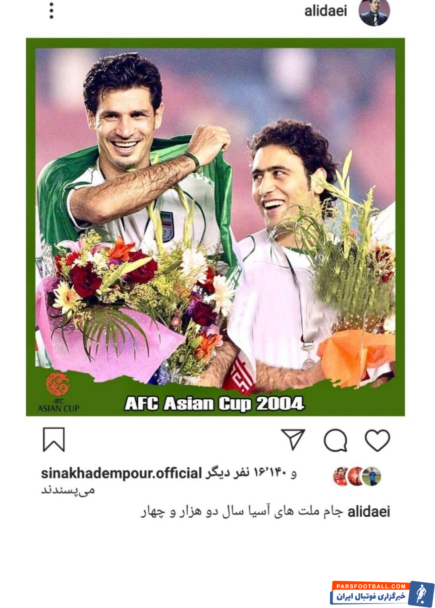 علی دایی بازیکن پیشین پرسپولیس و تیم ملی با انتشار تصویری از خودش به همراه مهدی مهدویکیا از مراسم اهدای مدال جام ملتهای آسیا ۲۰۰۴ در صفحه اینستاگرامش یاد آن روزها را زنده کرد.