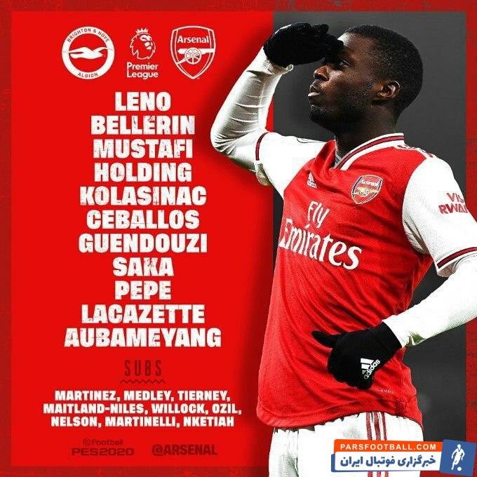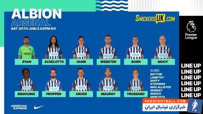 دقایقی قبل ترکیب دو تیم آرسنال و برایتون برای بازی امروز اعلام شد و این در حالی است که علیرضا جهانبخش حتی روی نیمکت تیم برایتون هم حضور ندارد: