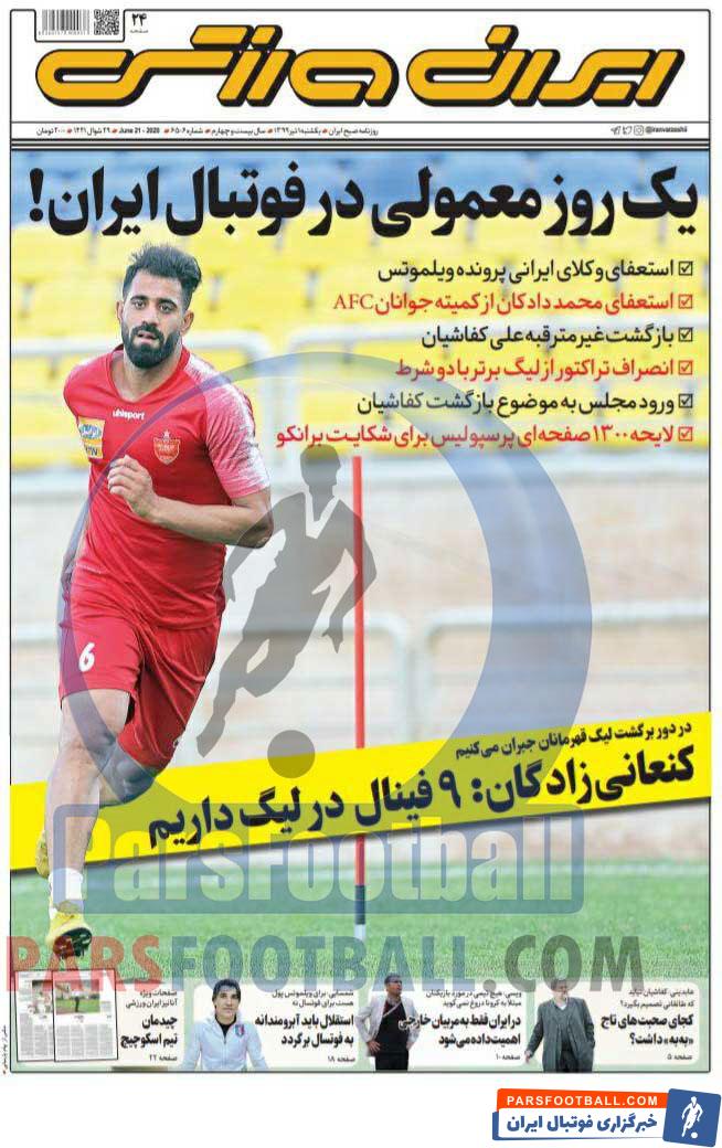 عناوین روزنامه ایران ورزشی یکشنبه ۱ تیر ماه به شرح زیر است :