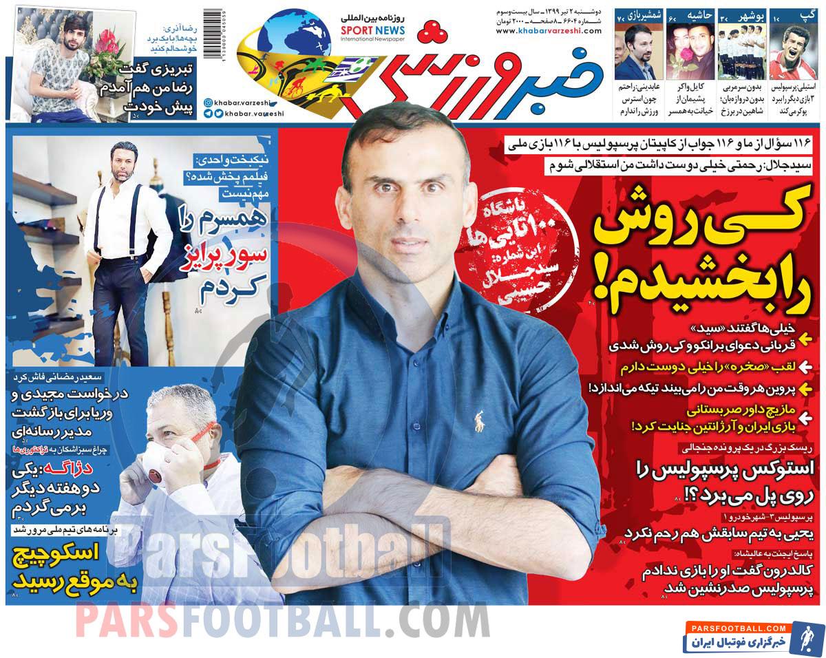 عناوین روزنامه خبر ورزشی دوشنبه ۲ تیر ماه به شرح زیر است :