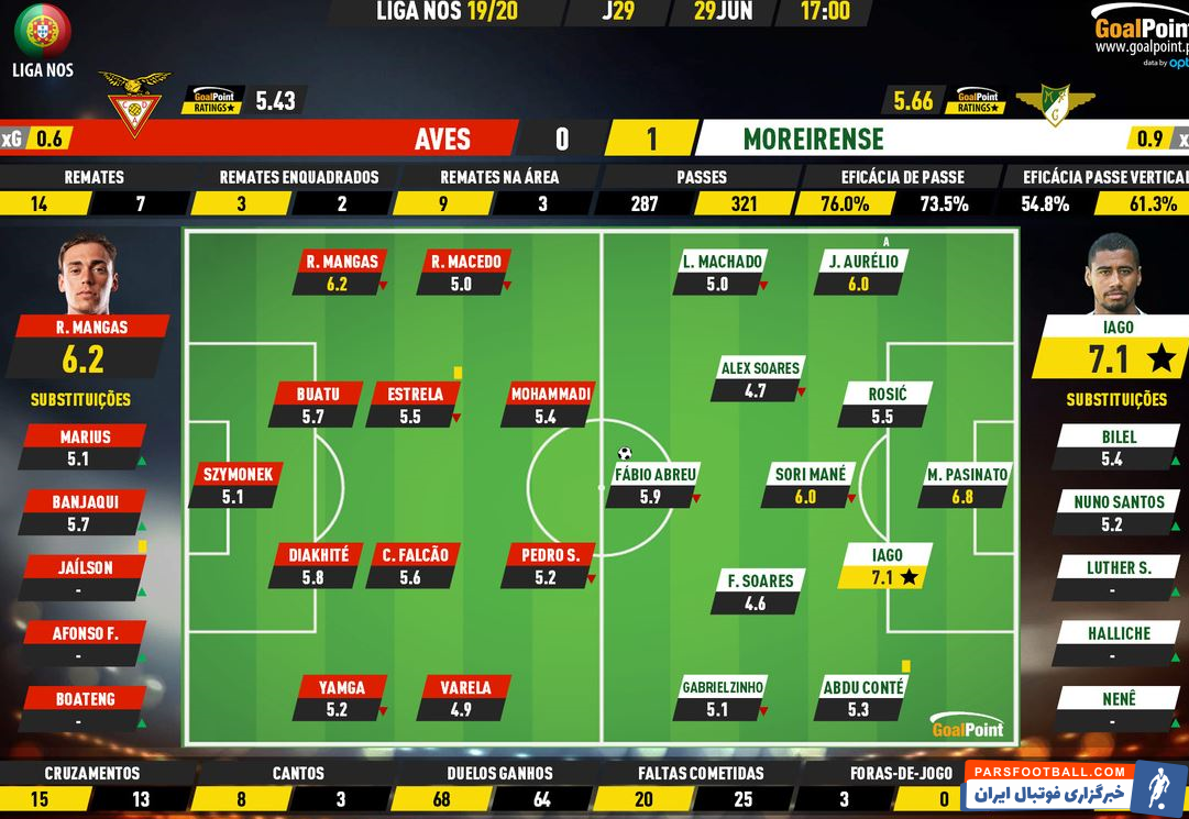 در این بازی مهرداد محمدی ۹۰ دقیقه در ترکیب آوس حضور داشت اما نتوانست مانع از باخت تیمش شود. آوس با این باخت در امتیاز ۱۴ و رده هجدهم لیگ فوتبال باقی ماند و در آستانه سقوط به لیگ دسته دوم پرتغال قرار دارد.