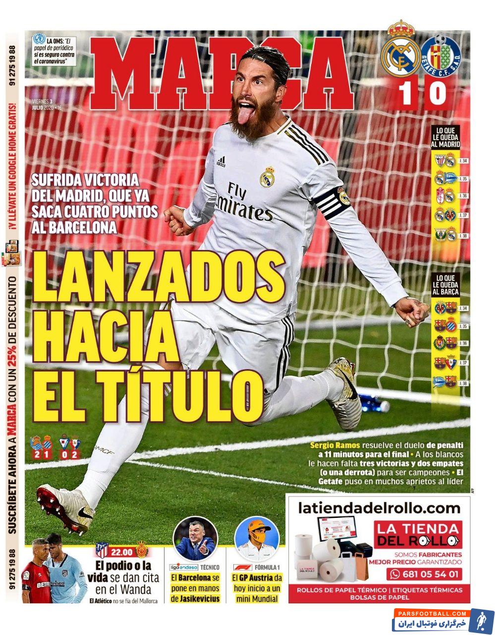 دو نشریه مادریدی مارکا و آاس صفحه اصلی امروز خود را به پیروزی رئال مادرید مقابل ختافه اختصاص داده اند.