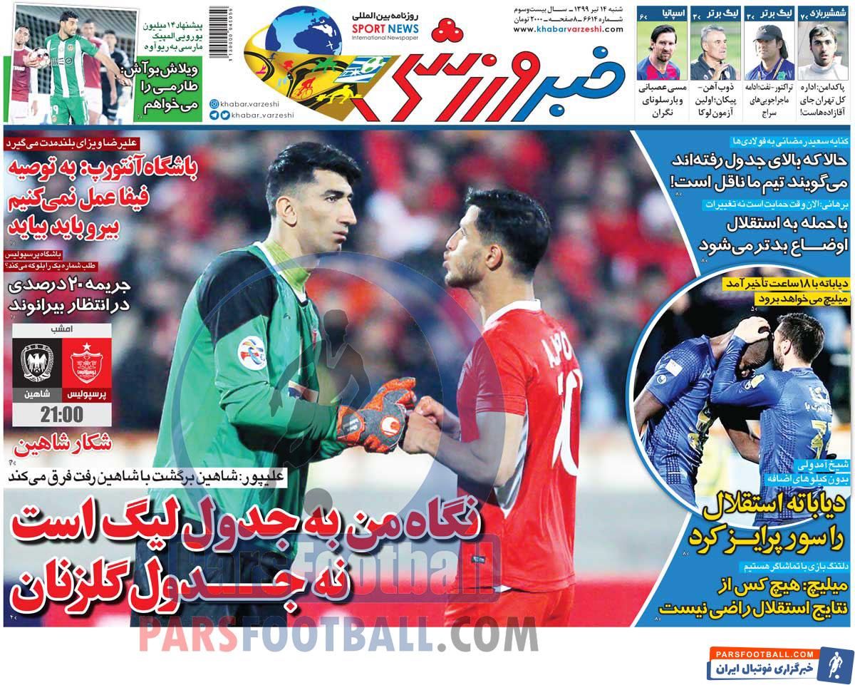 عناوین روزنامه خبر ورزشی شنبه ۱۴ تیر ماه به شرح زیر است :