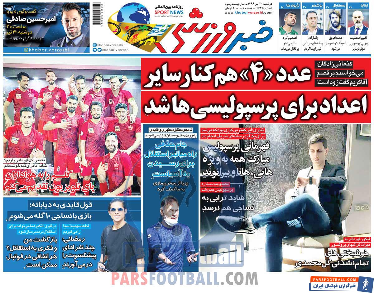 عناوین روزنامه خبر ورزشی دوشنبه ۳۰ تیر ماه به شرح زیر است :