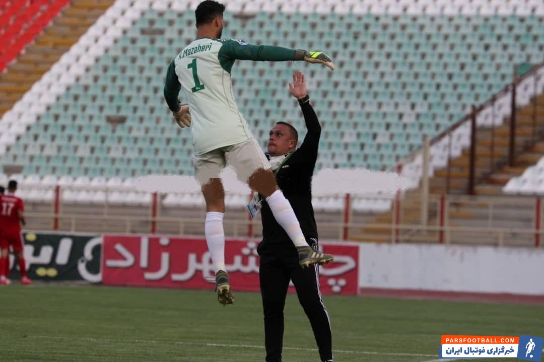 رشید مظاهری گلر تیم فوتبال تراکتور بعد از گل رضا اسدی پرش دو متری روی سر مربی دروازه بان های تراکتور داشت که توجه بسیاری را جلب کرد.