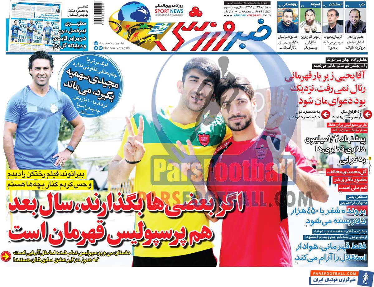 مرور عناوین مهم روزنامه خبر ورزشی سه شنبه 31 تیر