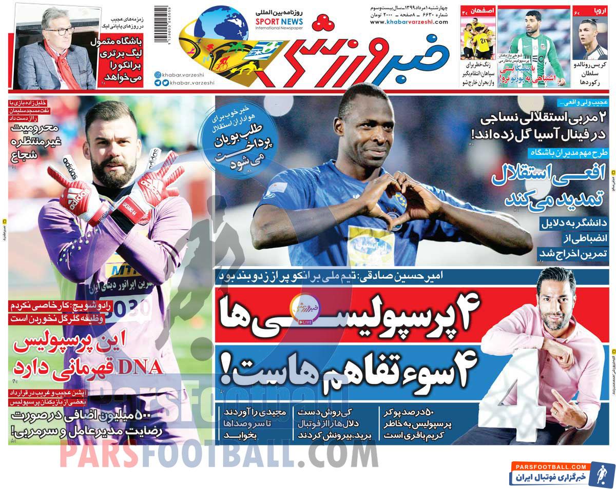 عناوین روزنامه خبر ورزشی چهارشنبه ۱ مرداد ماه به شرح زیر است :