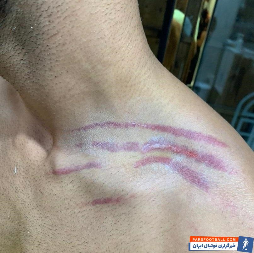 عکس منتشر شده از جراحت روی گردن و دست صادق بارانی بازیکن سایپا نشان میدهد حرکت بازیکن شاهین روی او به شدت خشن بوده است.