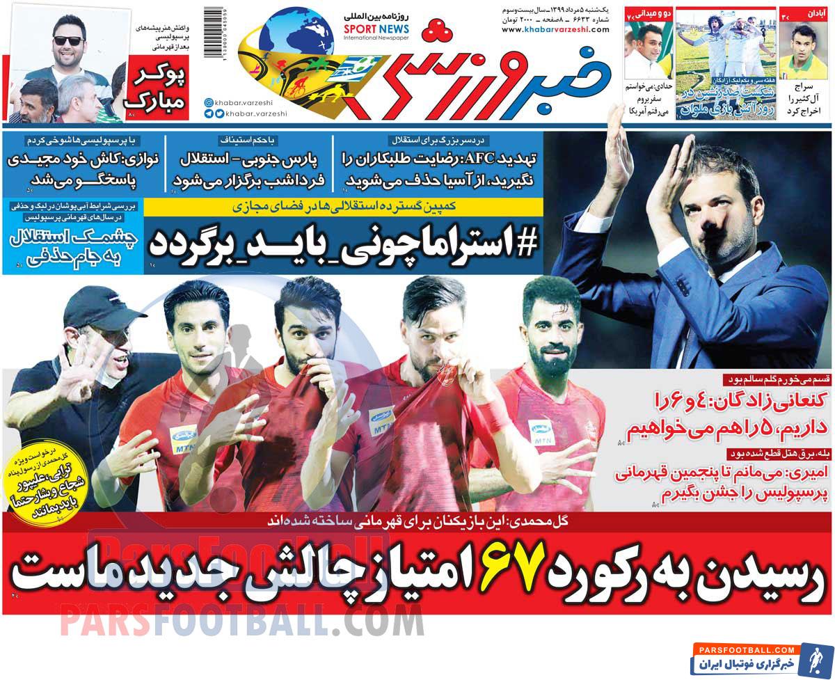 عناوین روزنامه خبر ورزشی یکشنبه ۵ مرداد ماه به شرح زیر است :