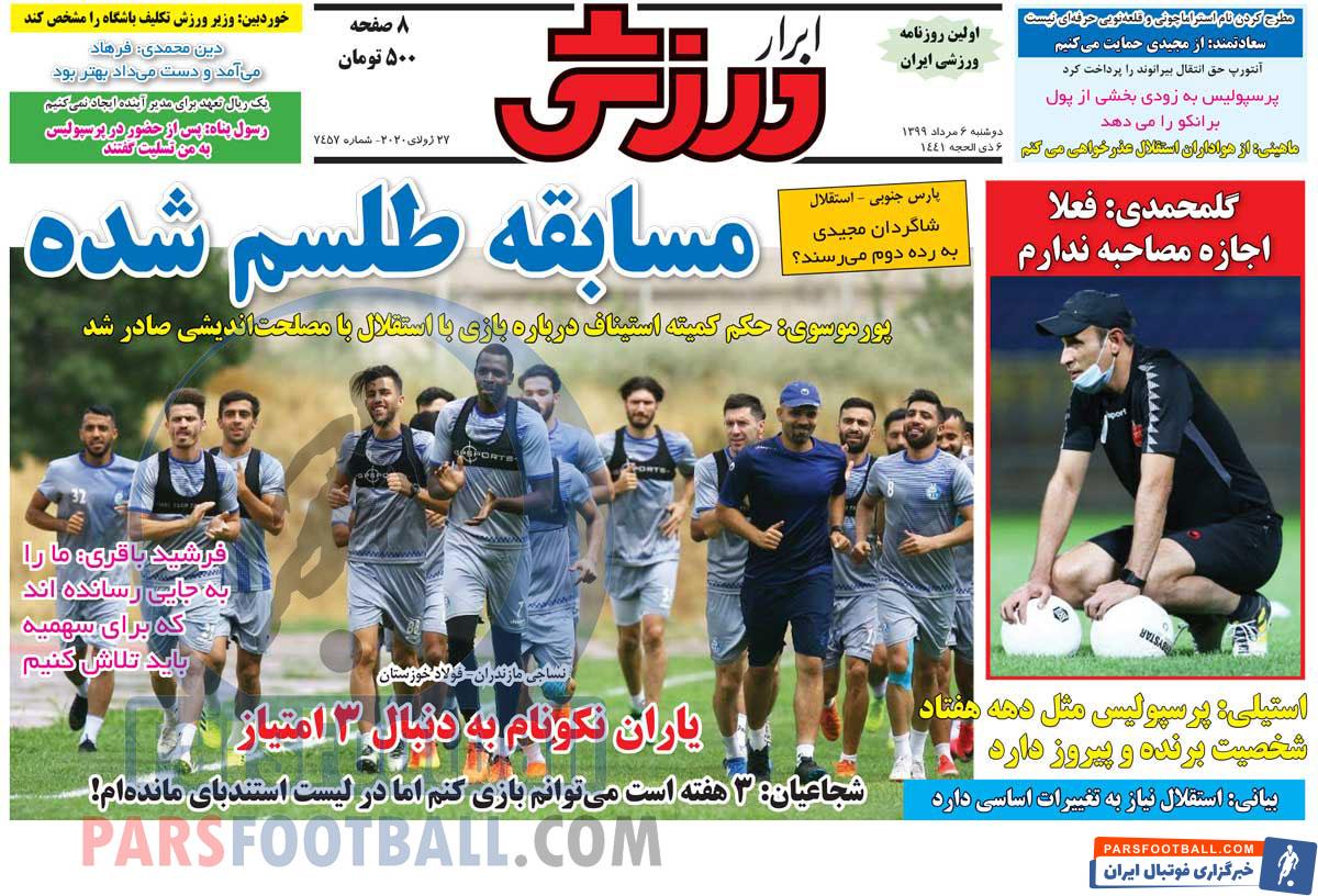عناوین روزنامه ابرار ورزشی دوشنبه ۶ مرداد ماه به شرح زیر است :
