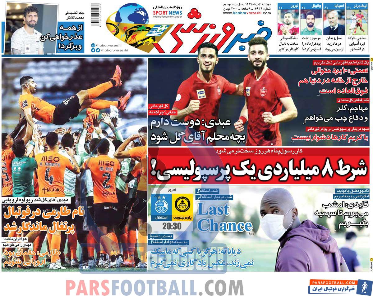 عناوین روزنامه خبر ورزشی دوشنبه ۶ مرداد ماه به شرح زیر است :