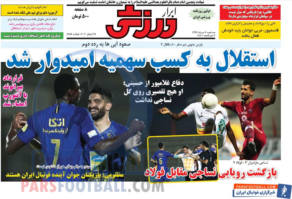 عناوین روزنامه ابرار ورزشی سه شنبه ۷ مرداد ماه به شرح زیر است :