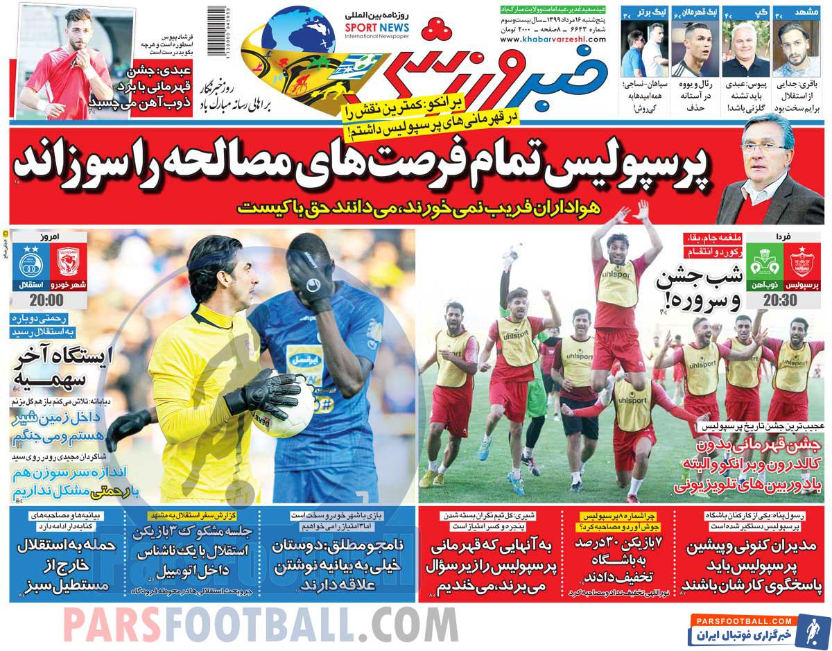 عناوین روزنامه خبر ورزشی پنجشنبه ۱۶ مرداد ماه به شرح زیر است :