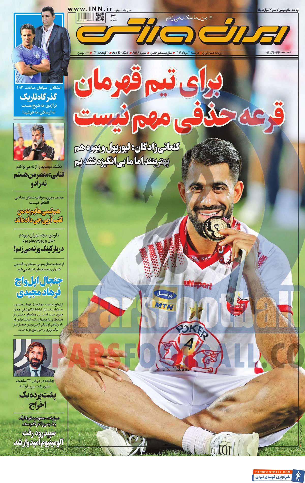 عناوین روزنامه ایران ورزشی دوشنبه ۲۰ مرداد ماه به شرح زیر است :