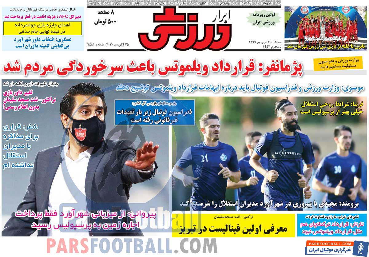 عناوین روزنامه ابرار ورزشی سه شنبه ۴ شهریور ماه به شرح زیر است :