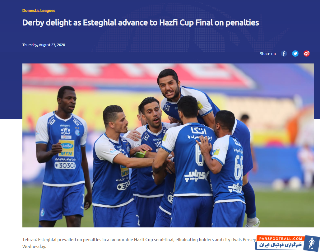 شب گذشته در چارچوب نیمه نهایی جام حذفی فوتبال کشور، استقلال مقابل پرسپولیس در ضربات پنالتی به برتری رسید و حریف تراکتور در فینال مسابقات شد. AFC به این دیدار جام حذفی واکنش نشان داد و این جدال زیبا دانست و از یک بازی فراموش نشدنی سخن گفت.