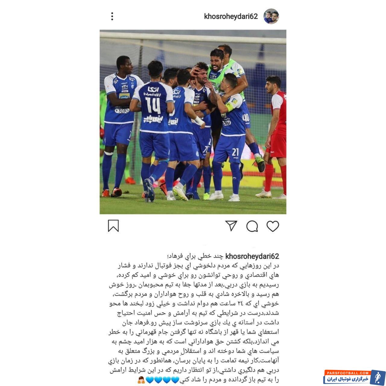 واکنش اینستاگرامی خسرو حیدری به استعفای جنجالی فرهاد مجیدی + عکس
