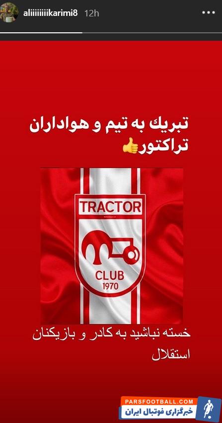 علی کریمی: تبریک به تیم و هواداران تراکتور. خسته نباشید به کادر و بازیکنان استقلال