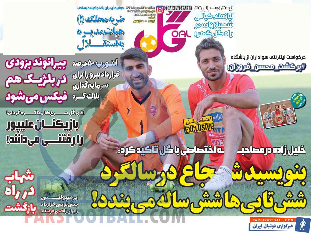 عناوین روزنامه گل یکشنبه ۱۶ شهریور ماه به شرح زیر است :