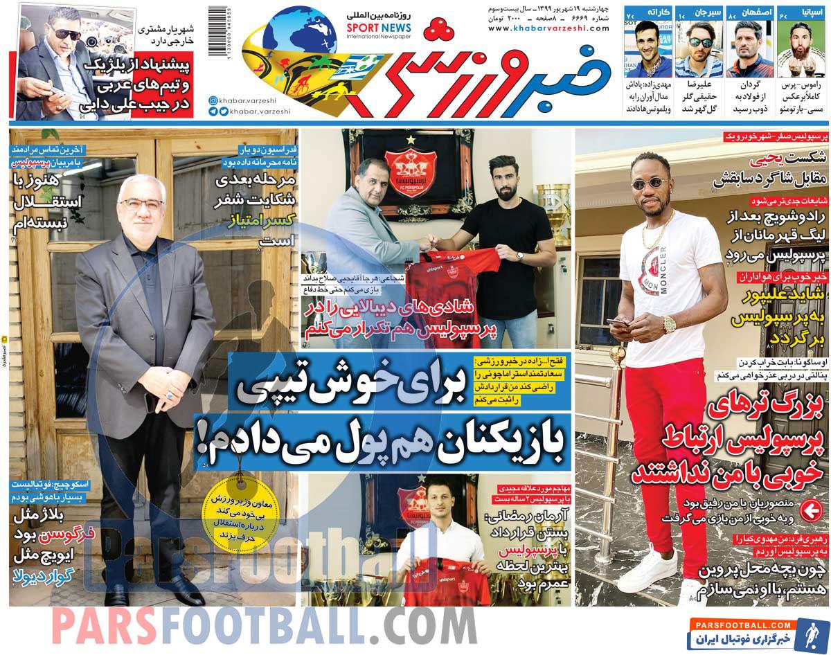 عناوین روزنامه خبر ورزشی چهارشنبه ۱۹ شهریور ماه به شرح زیر است :