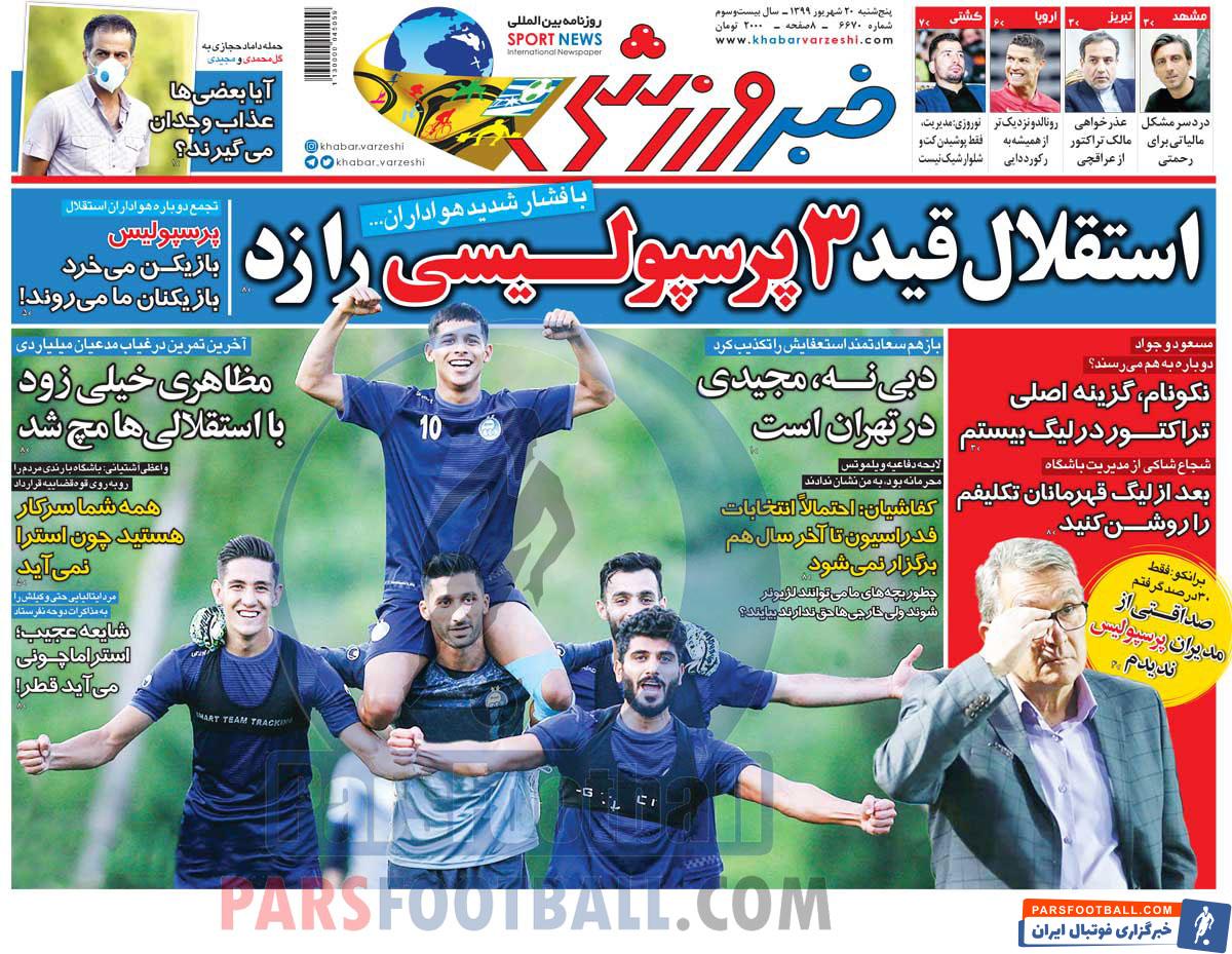 عناوین روزنامه خبر ورزشی پنجشنبه ۲۰ شهریور ماه به شرح زیر است :