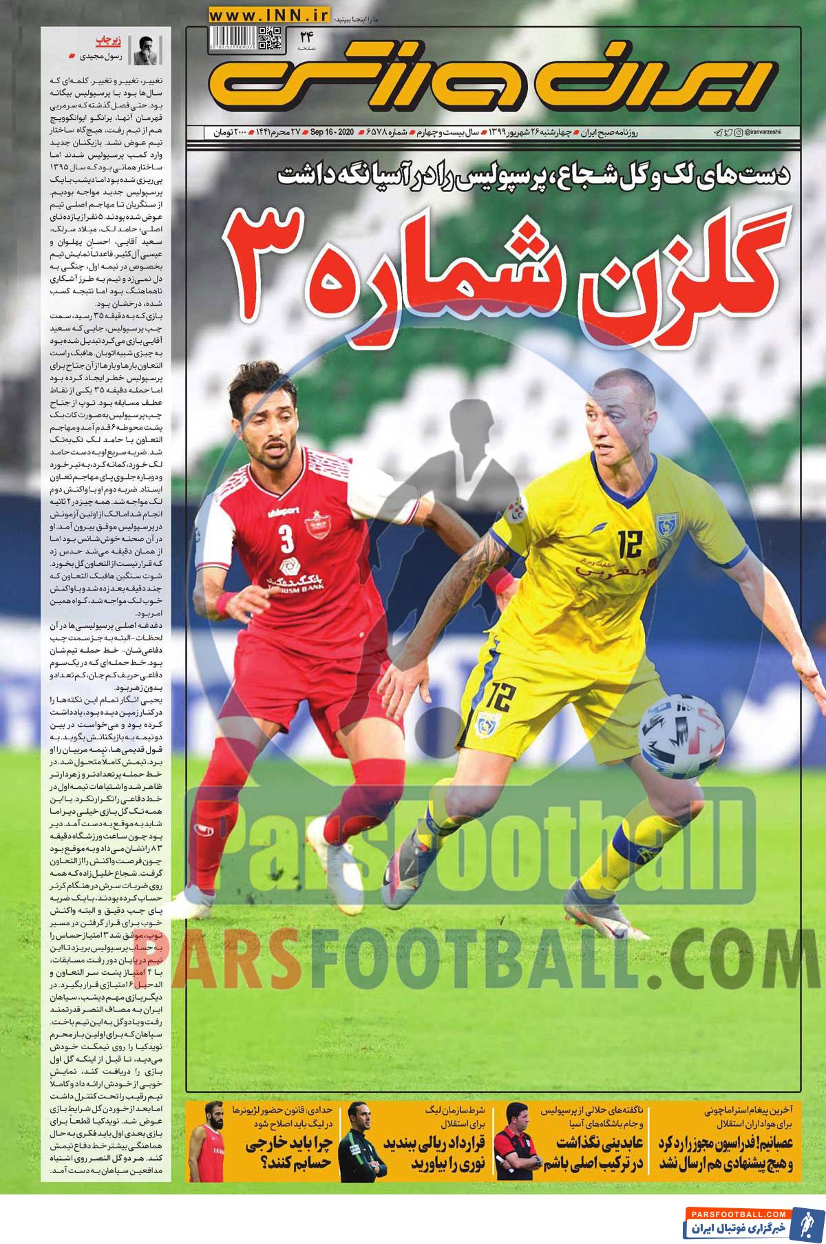 عناوین روزنامه ایران ورزشی چهارشنبه ۲۶ شهریور ماه به شرح زیر است :