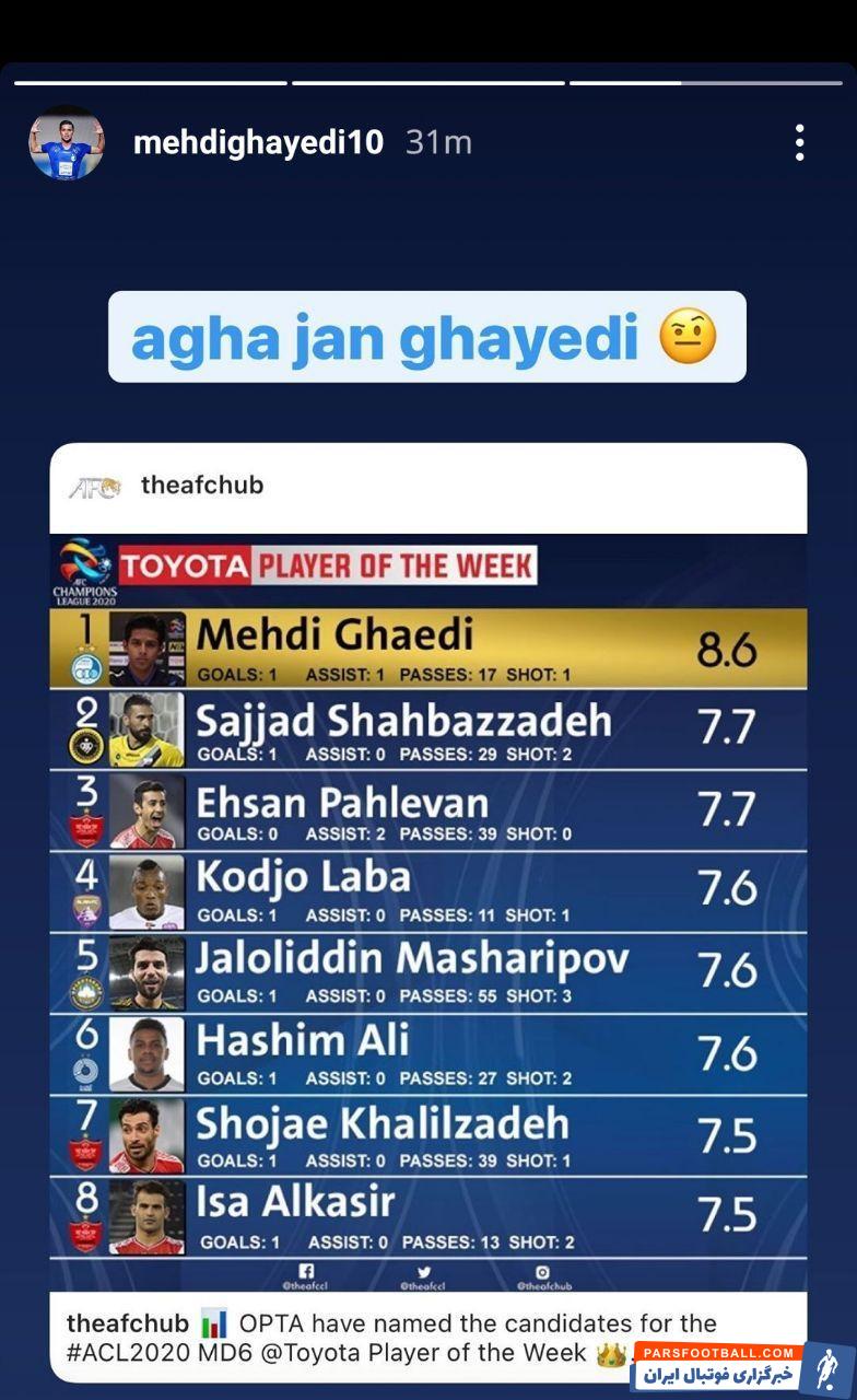 استوری اینستاگرامی مهدی قایدی در واکنش به اشتباه سایت AFC