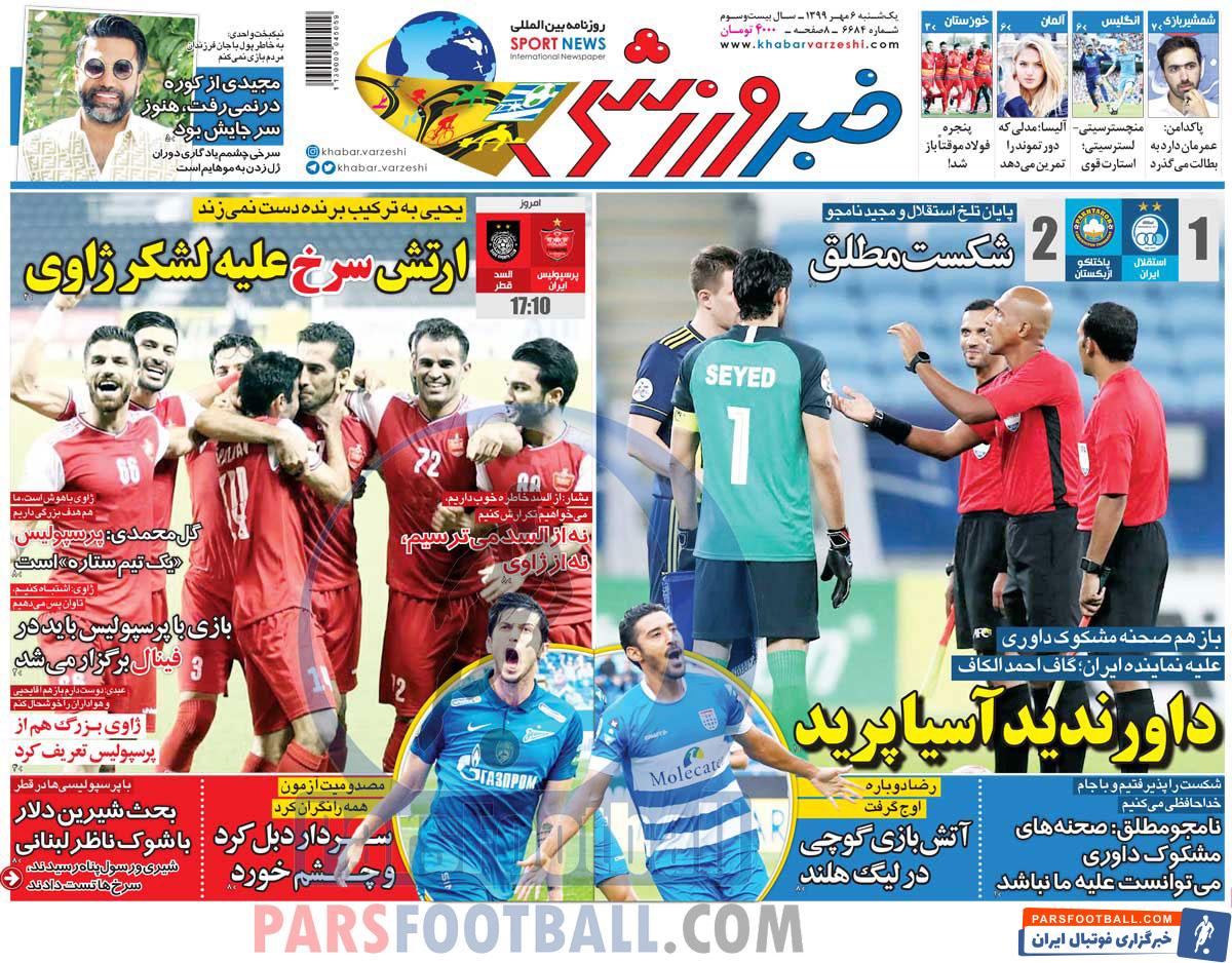 عناوین روزنامه خبر ورزشی یکشنبه ۶ مهر ماه به شرح زیر است :