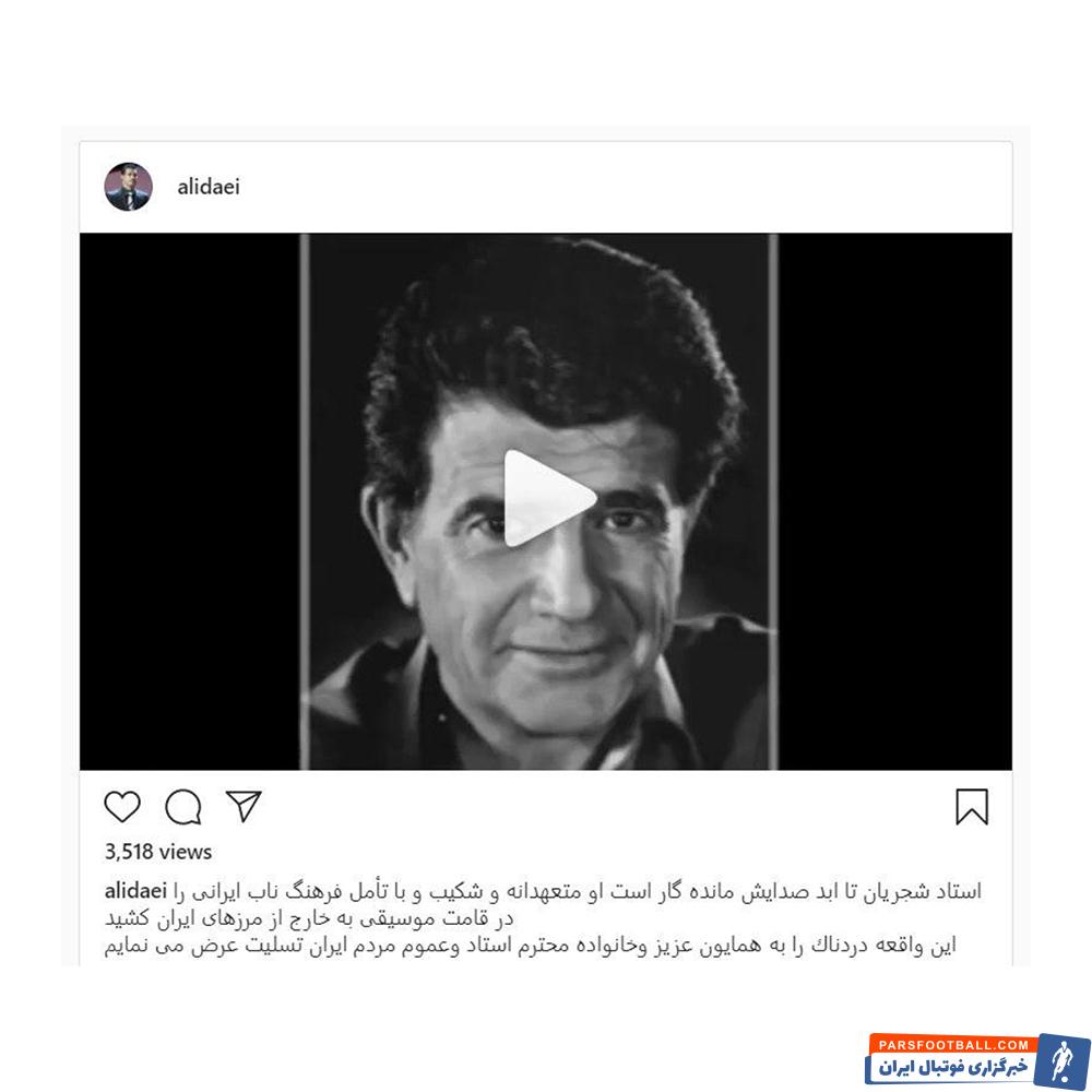 علی دایی اسطوره فوتبال ایران با انتشار پستی در صفحه اینستاگرام خود درگذشت محمدرضا شجریان، استاد آواز ایران را تسلیت گفت.