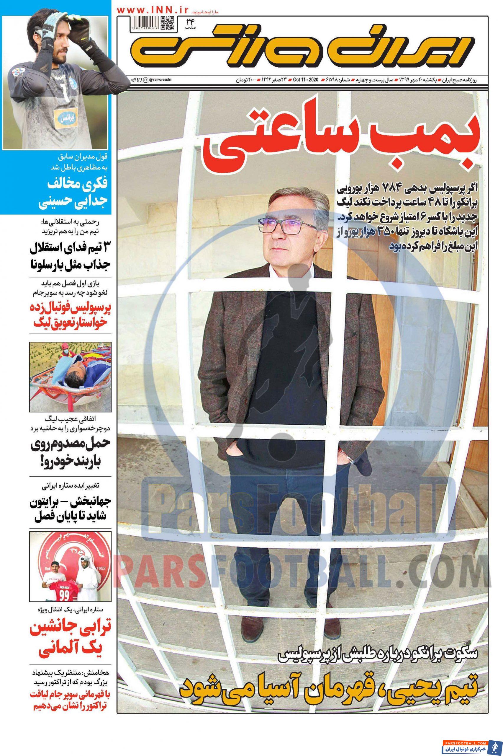 عناوین روزنامه ایران ورزشی یکشنبه ۲۰ مهر ماه به شرح زیر است :