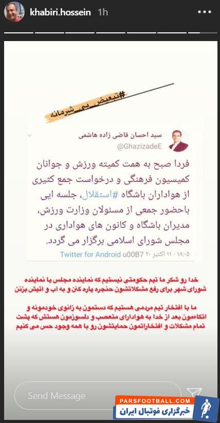 حسین خبیری معاون پرسپولیس نوشت: