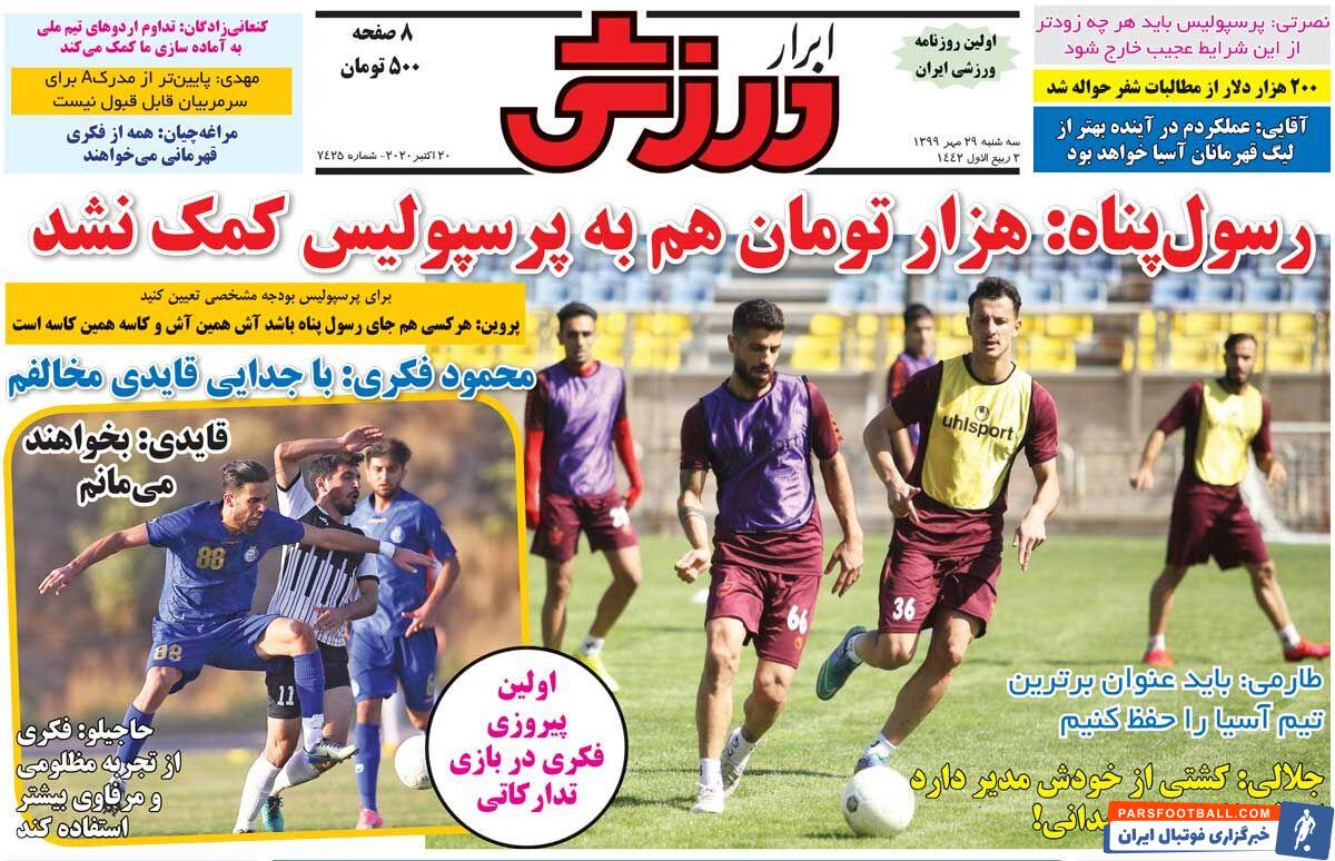 عناوین روزنامه ابرار ورزشی سه شنبه ۲۹ مهر ماه به شرح زیر است :