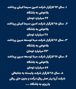 ۱- سال ۱۳۹۴ کارگزار شرکت امین سیما کیش پرداخت بلاعوض به باشگاه ۲۴ میلیارد تومان