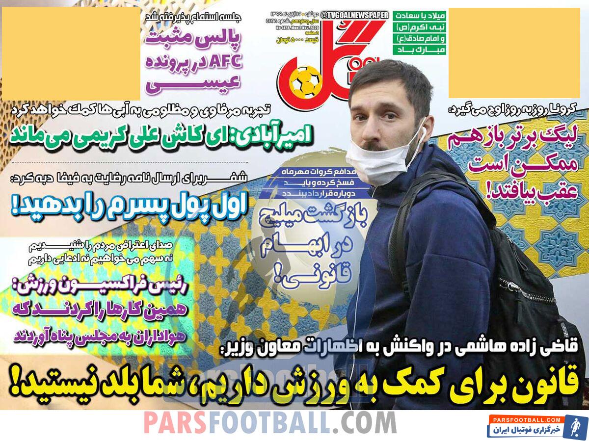 عناوین روزنامه گل دوشنبه ۱۲ آبان ماه به شرح زیر است :