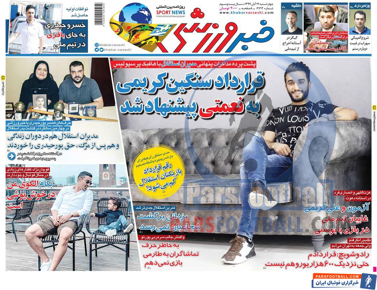 عناوین روزنامه خبر ورزشی چهارشنبه ۱۴ آبان ماه به شرح زیر است :
